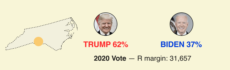 The challenge for Democrats in North Carolina is just how many conservative voters live outside of the major cities that Republicans always lose. Just outside of Charlotte, this is one of the GOP’s best vote sinks; Biden trimmed the Trump advantage here in 2020, but not by enough to stop him from losing statewide.