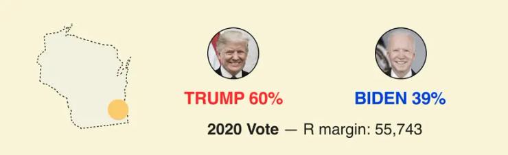 In Wisconsin’s Waukesha County, Democrats were hoping for a dramatic suburban shift that could offset other losses. With 92% of ballots counted, they got only a small shift in their direction, trimming Trump’s 21-point lead from four years ago to a 19-point lead. Trump offset that win with incremental gains in Dane County.