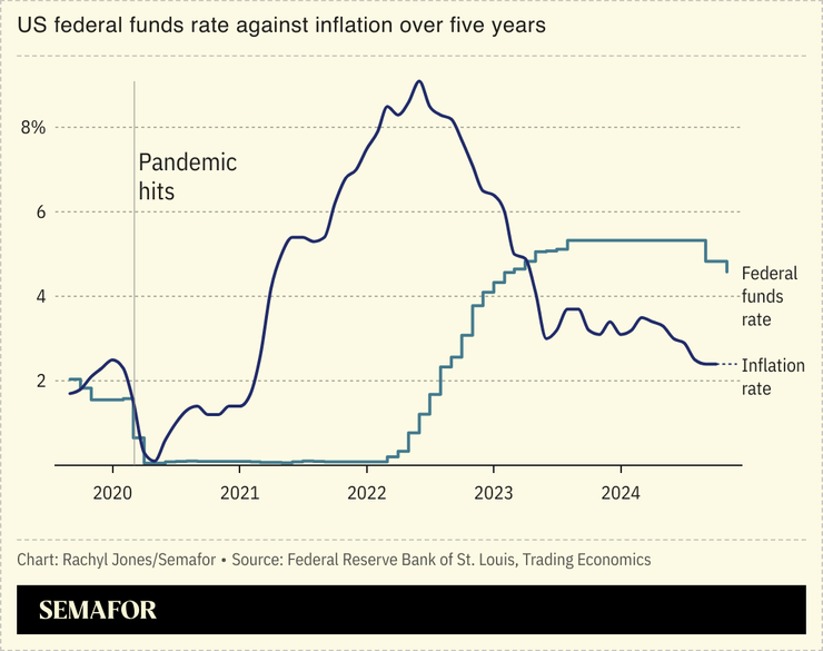 With Trump’s reelection, the Fed’s path forward has become murkier, Politico reported, as the central bank needs to see how the future administration’s policies might change the economy’s trajectory. Trump campaigned on pledges to hike import tariffs and restrict immigration, which economists warned could stoke inflation. Speaking on Thursday, Powell pushed back on the idea that the incoming administration had influence on near-term decisions, adding that “We don’t know what the timing and substance of any policy changes will be. We therefore don’t know what the effects on the economy would be — specifically, whether and to what extent those policies would matter for the achievement of our goal variables: maximum employment and price stability.”