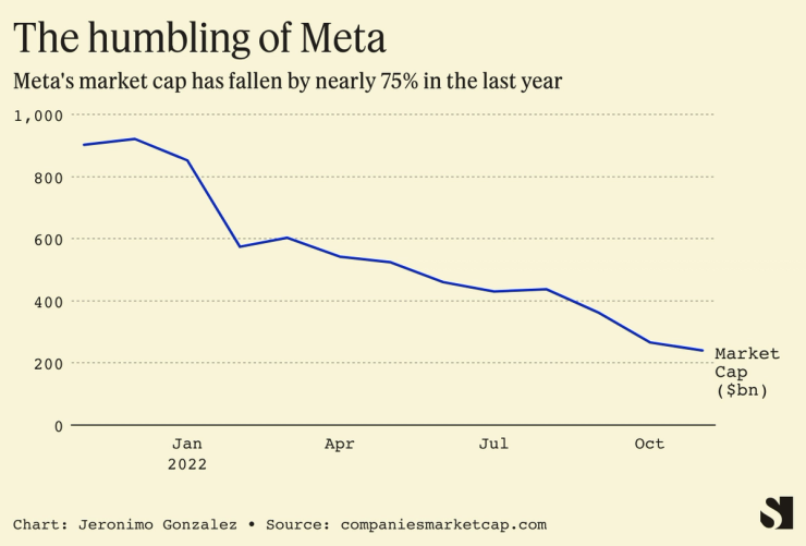 “Today I’m sharing some of the most difficult changes we’ve made in Meta’s history,” Chief Executive Mark Zuckerberg said in a message to employees. “I’ve decided to reduce the size of our team by about 13% and let more than 11,000 of our talented employees go.”