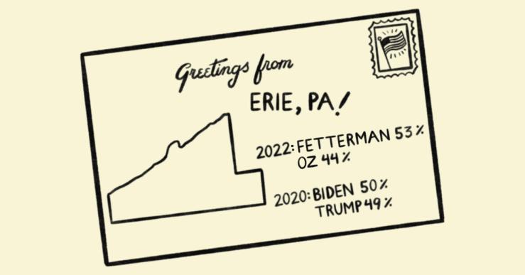 In that part of the state, Oz did about as well as Donald Trump had in 2020. But he did worse in rural Pennsylvania, and in the places that had trended right during Barack Obama’s presidency. Fetterman ran ahead of Biden’s numbers across the state, holding Oz under 60 percent of the vote in places where Trump had cleared that number. Erie County, where the eponymous city is heavily Democratic, but most townships voted for Trump, gave him a 10,000 vote victory, up from Biden’s 1,500-vote upset two years ago.