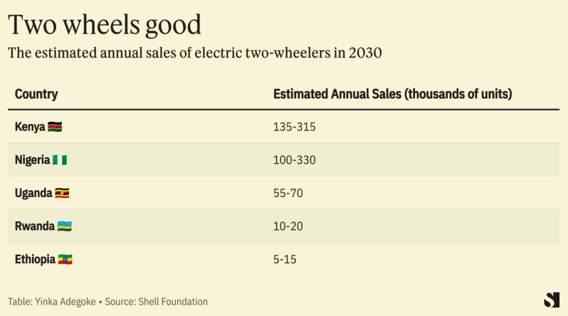 However, limited financing has fallen well short of the levels needed to keep up with that demand, making it hard for companies to produce vehicles and keeping the cost of EVs high for consumers. As much as $9 billion in financing may be required by 2030 to grow a sustainable market for electric two-wheelers in Kenya, Nigeria, Uganda, Rwanda and Ethiopia, according to a report by the Shell Foundation charity.