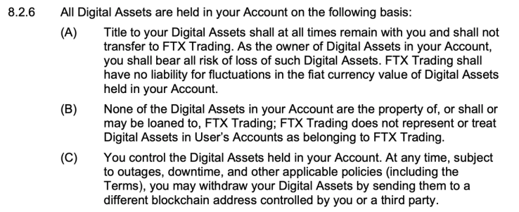 Those transfers could violate U.S. law and are the focus of the federal probes, people familiar with the matter said. They would also likely violate FTX’s terms of service, shown below, which could carry civil penalties.
