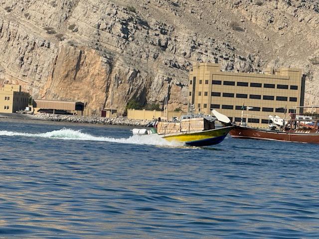 Where the Arabian peninsula spikes out up into a sharp point, separating the Arabian Sea and Gulf of Oman, only 21 nautical miles south of Iran, lies Musandam. On a clear day, you can see the Iranian coast across the shipping lanes where a quarter of the world’s oil consumption passes through. It looks nothing like the rest of Arabia. Craggy cliffs drop perpendicular to the sea, as if the fjords of Norway or Greenland were transplanted to a desert landscape. Barren rock meets blue sea, blue sky.