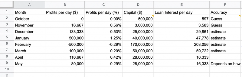 - Spent $9 million on interest payments to Tallinn and Luke Ding, a former currency trader turned philanthropist, whose loans charged 43%. “This was a small price to pay in an environment where it’s easy to make 1% per day,” Bankman-Fried wrote in one document, “but when our trading was poor the interest piled on.”