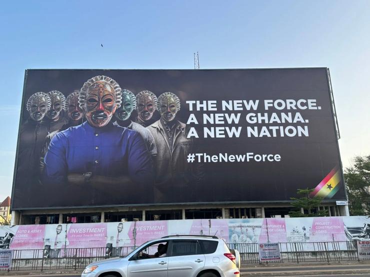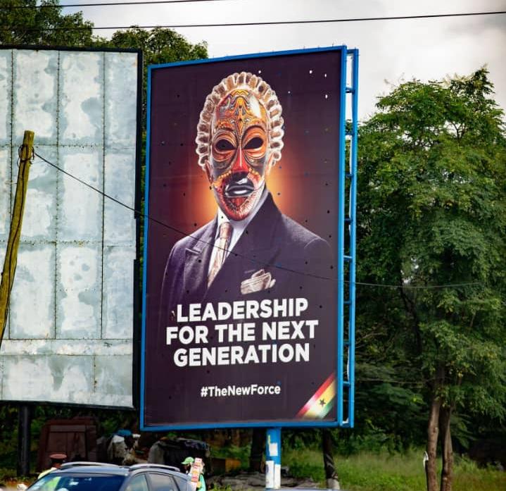 ACCRA, Ghana — Giant billboards featuring a man in a mask and the simple message “leadership for the next generation #thenewforce” have appeared in major cities across Ghana in recent weeks. Other billboards, featuring a masked man flanked by other people with covered faces, have been rolled out as part of the campaign.