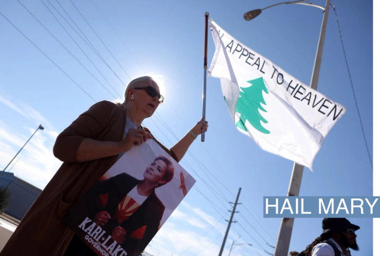 Like Lake, her supporters in the movement insist that most Arizonans wanted her to be governor, and were undone by ballot-printing problems that affected 70 of 223 Maricopa voting centers — though those problems were fixed during the day, and occurred in both blue and red parts of the county. On Monday, a Lake ally in the state Senate even filed a lawsuit on behalf of plaintiffs in deep red Mohave County, arguing that their “voting strength” had been “diluted” by Maricopa.