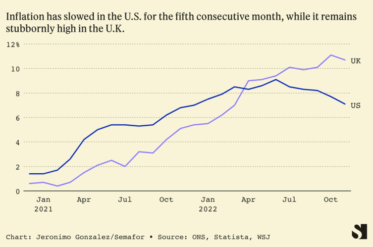 Elsewhere, inflation in Britain also slowed, but at 10.7% remains near its highest level in 40 years.