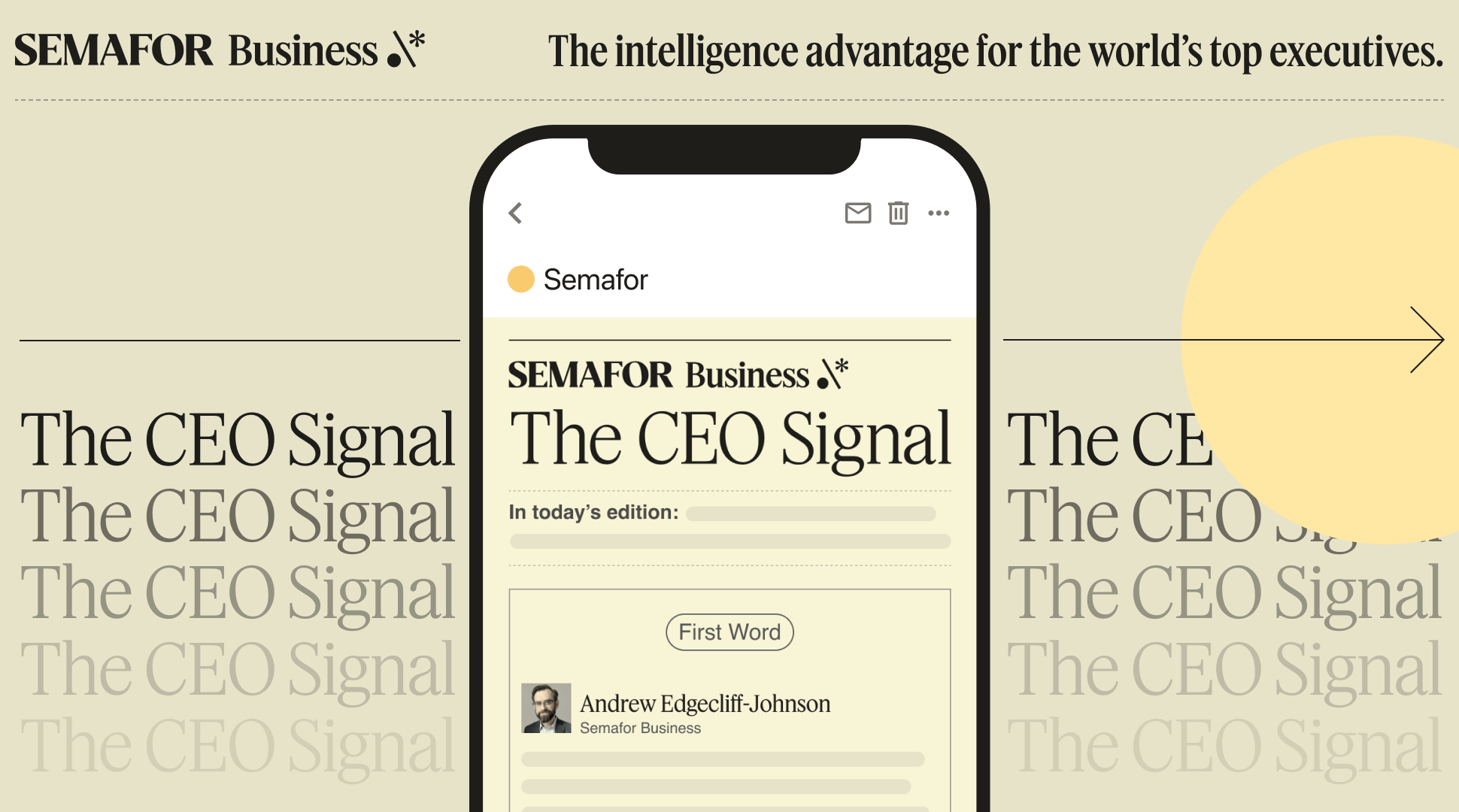 Focusing on exclusivity over scale, The CEO Signal from Semafor Business will launch first as a newsletter, sponsored by PwC, with an initial subscription cohort of top chief executives across a range of sectors. Each edition will feature an exclusive blend of timely commentary, interviews with key business leaders by Edgecliffe-Johnson and Hoffman, and a tightly packaged guide to the ideas and developments that should be on any leader’s radar.