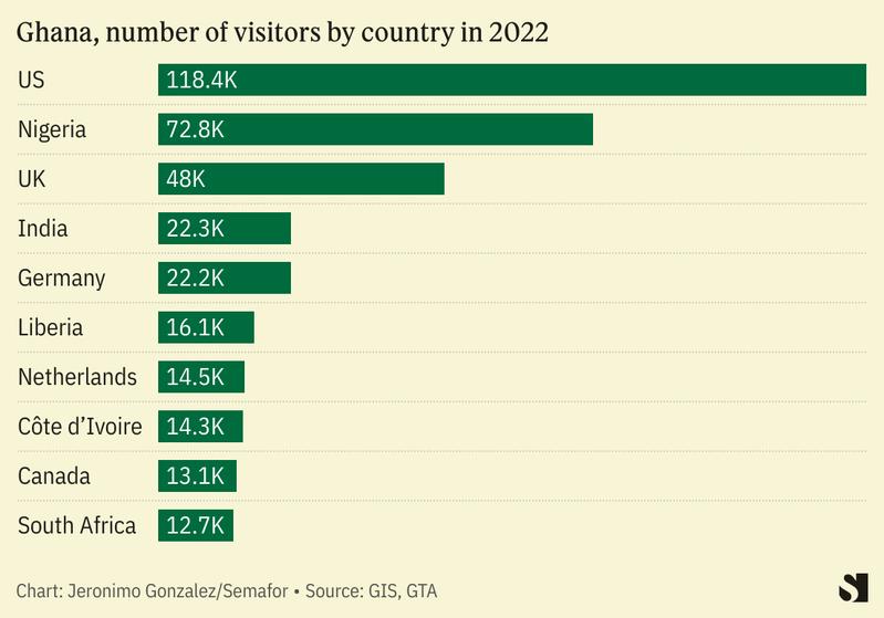 Authorities hope that removing the need for a pre-travel visa for that 46-day period, along with events targeting people of African descent such as the Panafest and Emancipation arts festival and the Africa Basketball Festival, will help meet its goal of generating $3.4 billion in tourism revenue. That target is up from about $2 billion in 2022, Kofi Atta Kakra Kusi, deputy head of corporate affairs at the Ghana Tourism Authority (GTA), told Semafor Africa.