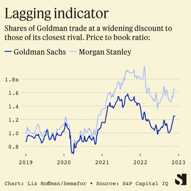 Since then, the costs have piled up. Despite what is set to be Goldman’s second-best year ever, by revenue, a funk has settled over its headquarters at 200 West Street. The firm plans to lay off up to 4,000 people, or 8% of headcount, and is planning deep cuts to bonuses for its 450-odd partners, Semafor has reported.