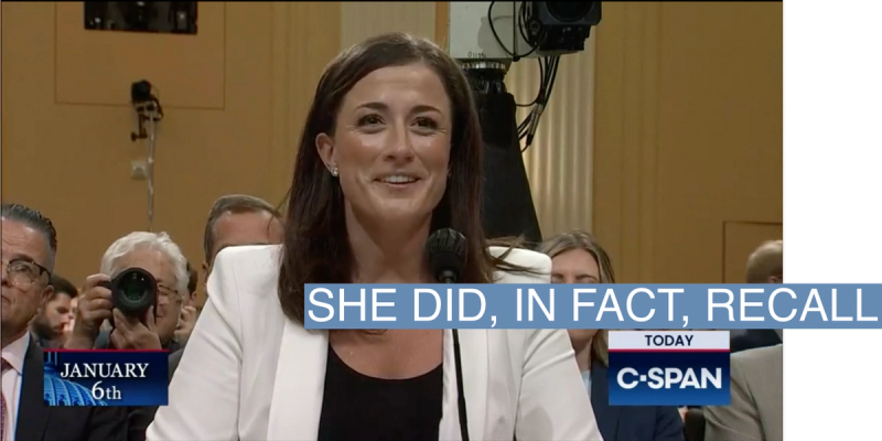 Cassidy told the committee in September that as she prepared to testify, she was initially represented by Stefan Passantino, who served as an ethics lawyer in the Trump White House. She said Passantino urged her to downplay her memory of events leading up to the Capitol riot, and lean on the phrase “I do not recall” when she didn’t remember every detail.