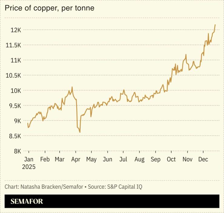 Copper’s value comes from its critical role in the energy transition: Powering EVs, the AI boom, and the shift from fossil fuels to renewables. In December, copper hit $12,000 per tonne, its highest rate since the 2009 financial crisis recovery.
